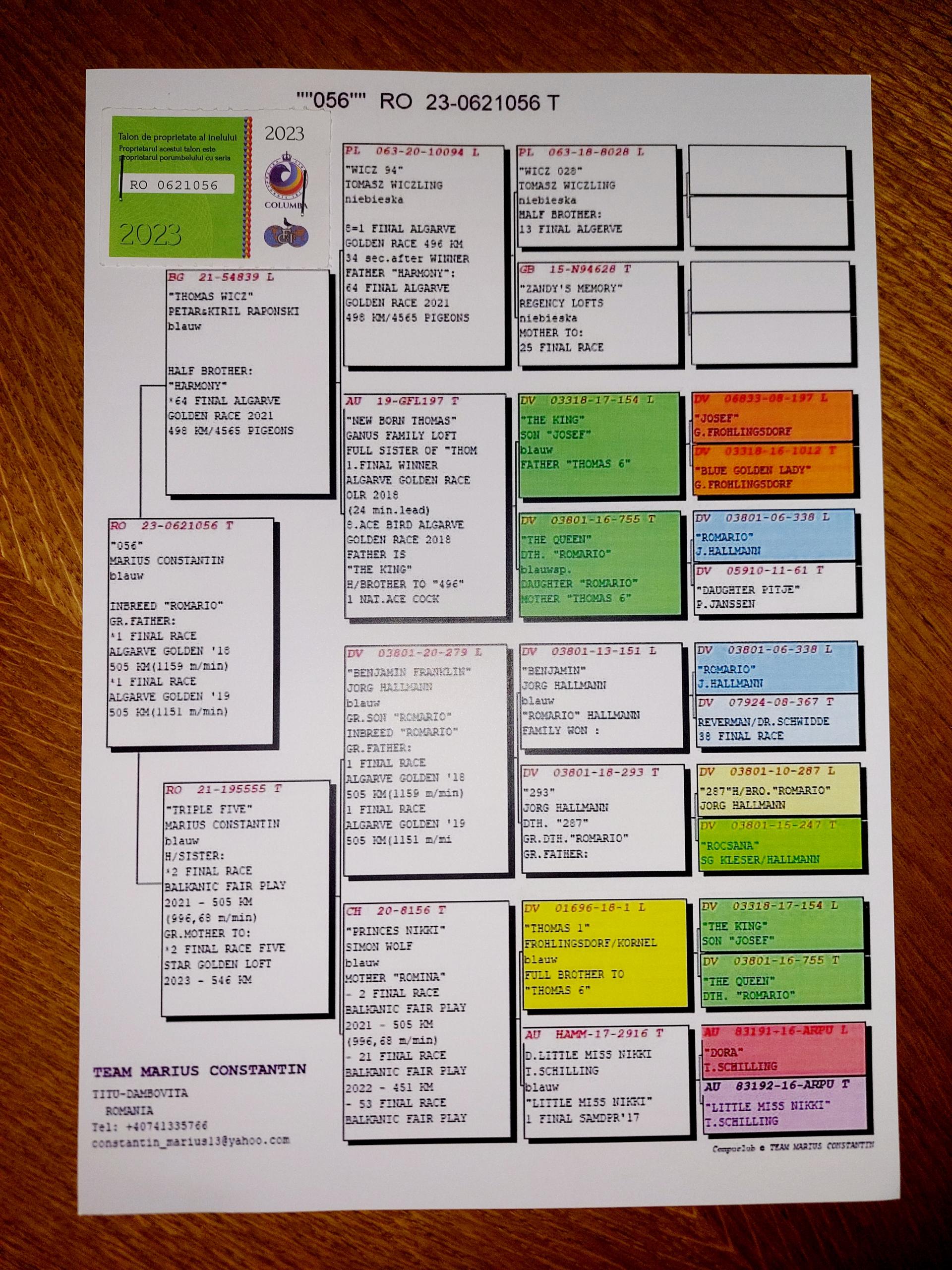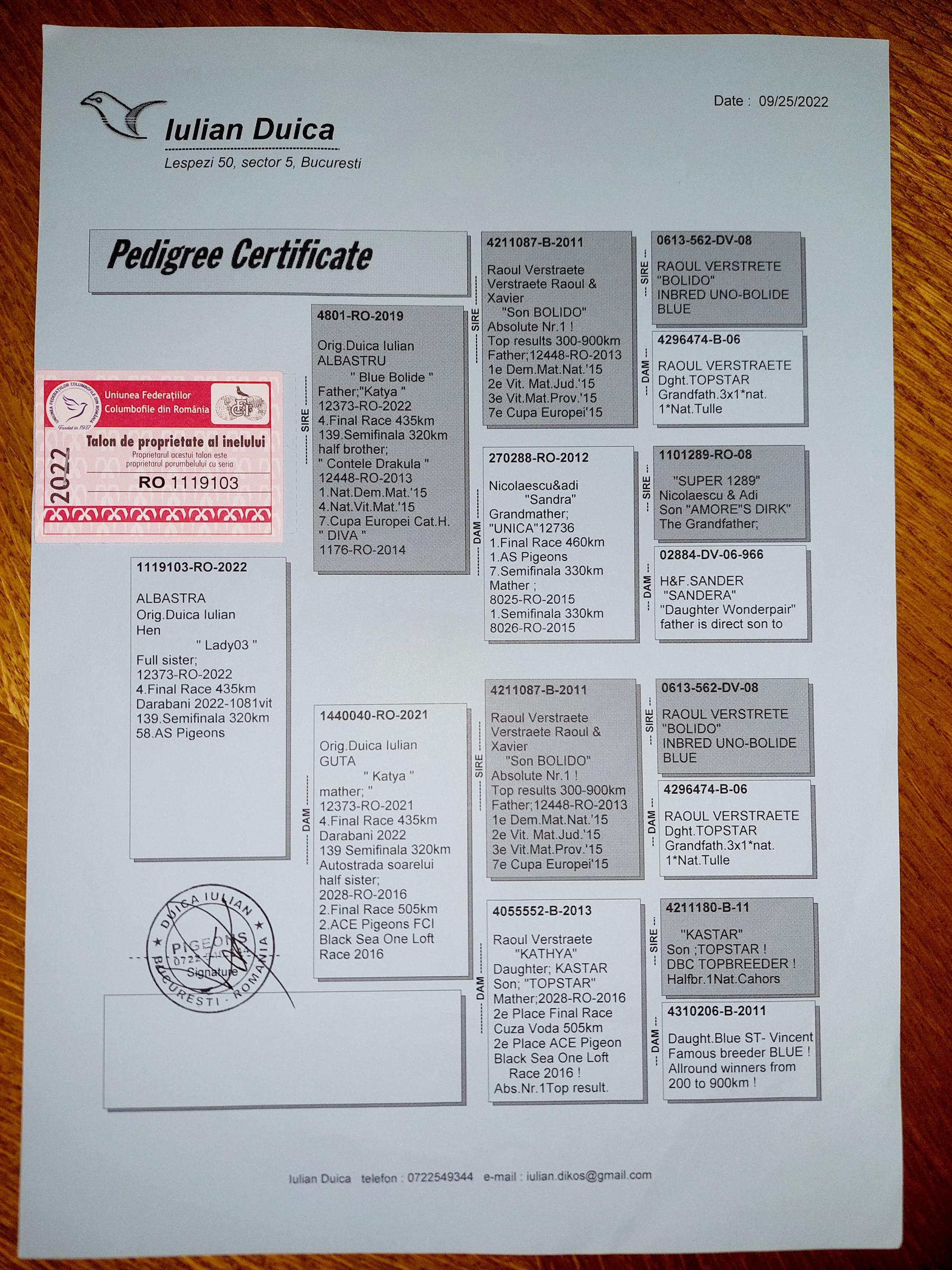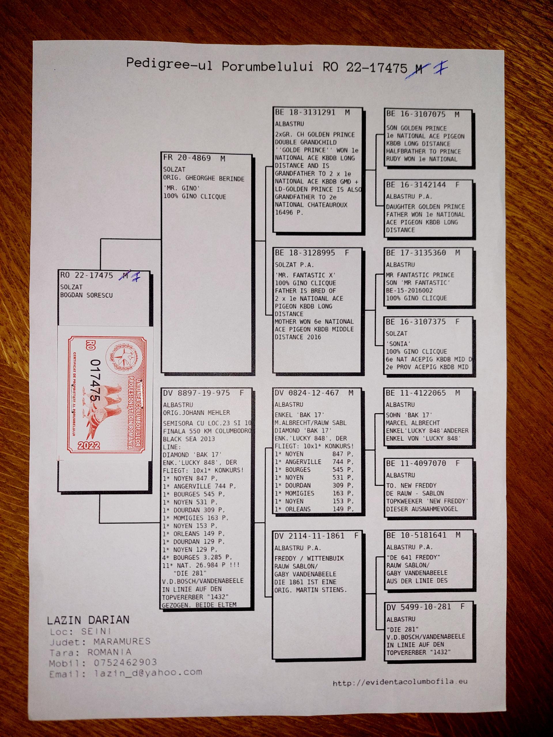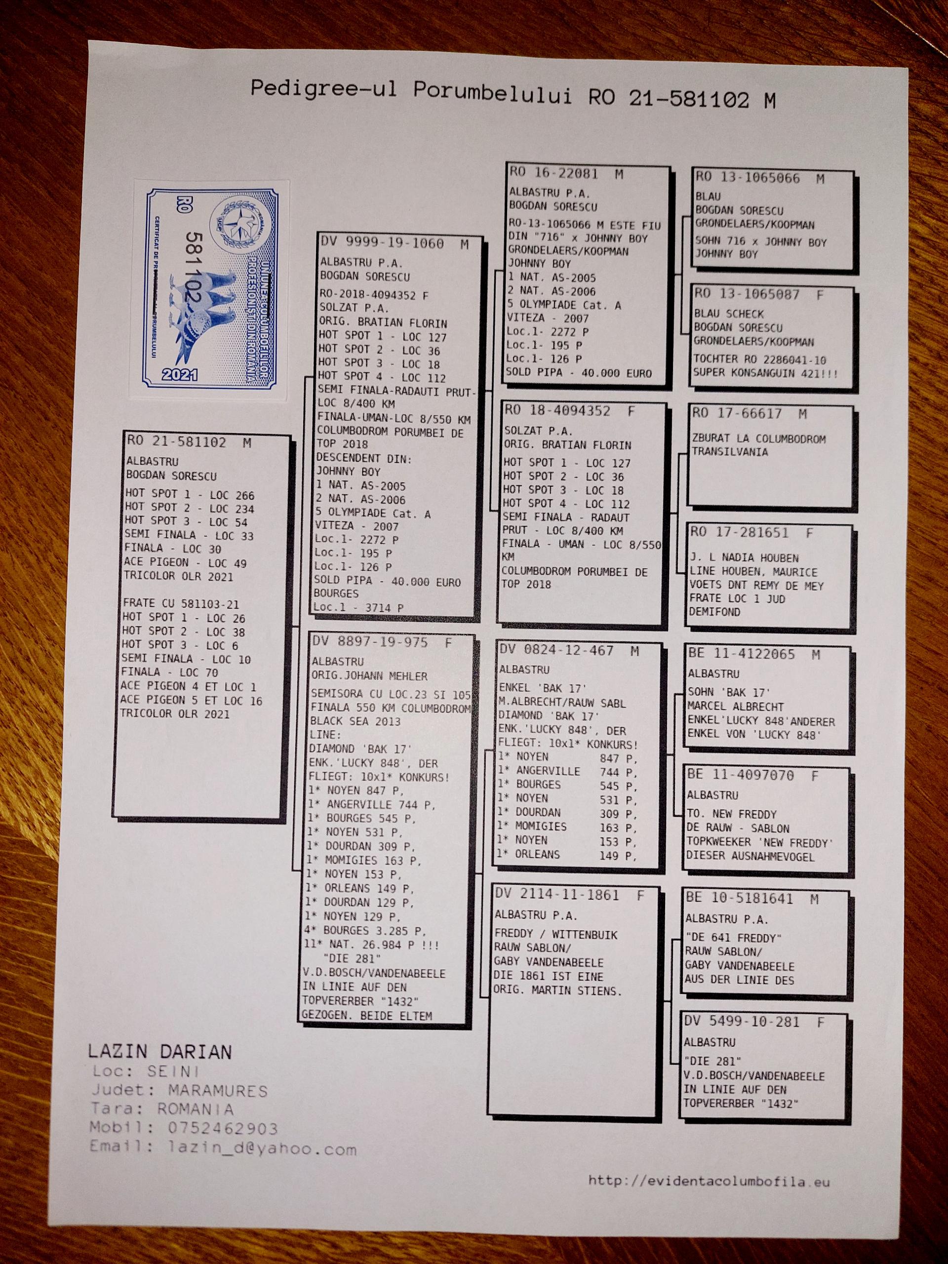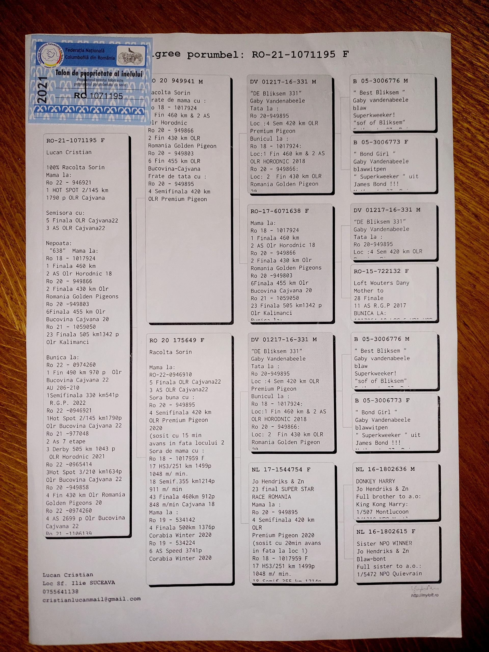 Bunica la loc 13 finala si 8 as porumbei de top 2022 Bunica la loc 8 finala si 1 as porumbei de top 2022 Plus multi altii porumbei de top pe campionat Semifrate cu loc 1 nat. Viteza maturi 2024 Loc 10 nat. as viteza 2024 Loc 20 nat. Viteza maturi 2025 Loc 1 nat. Viteza palm 2 ani 24-25