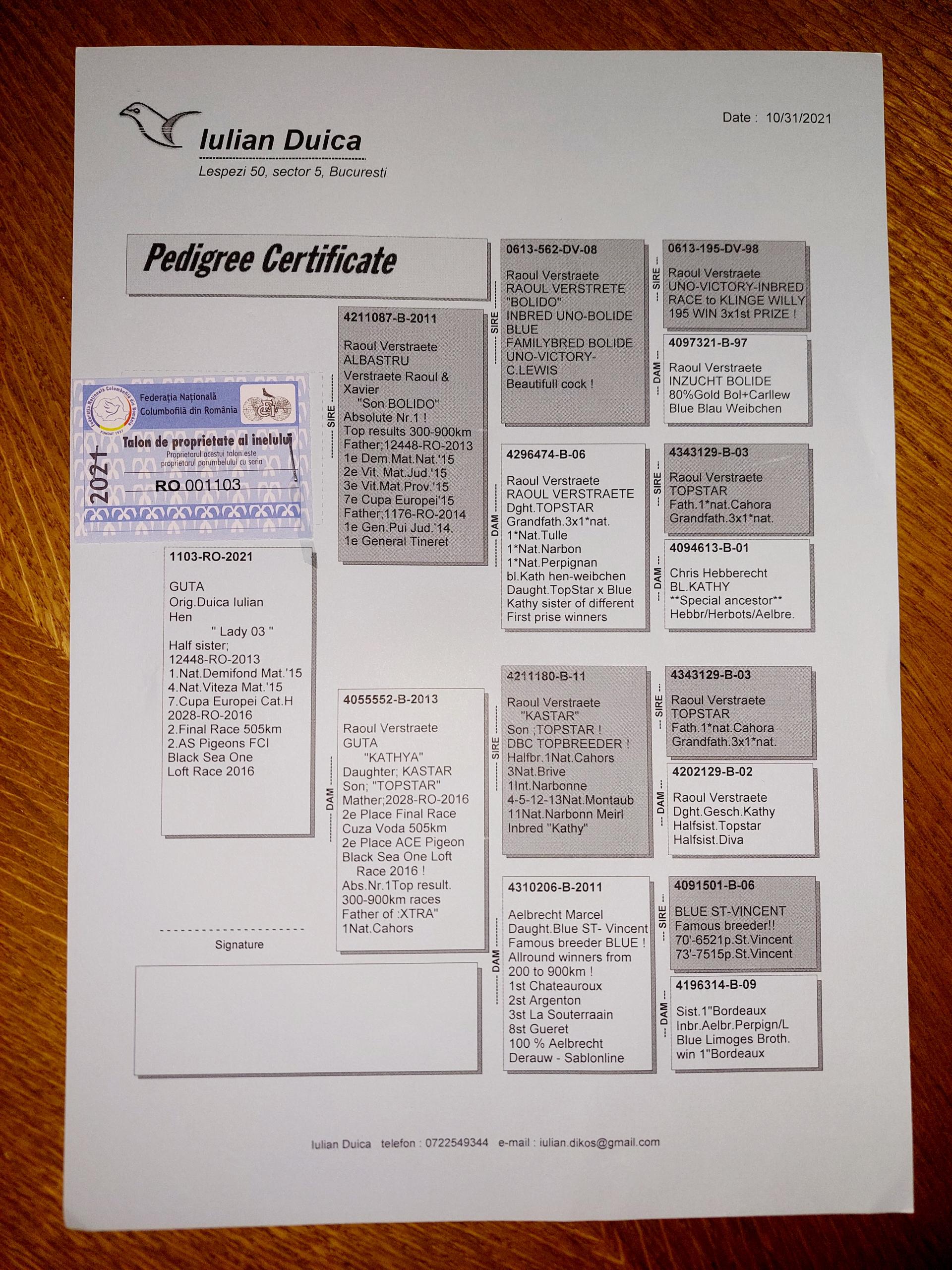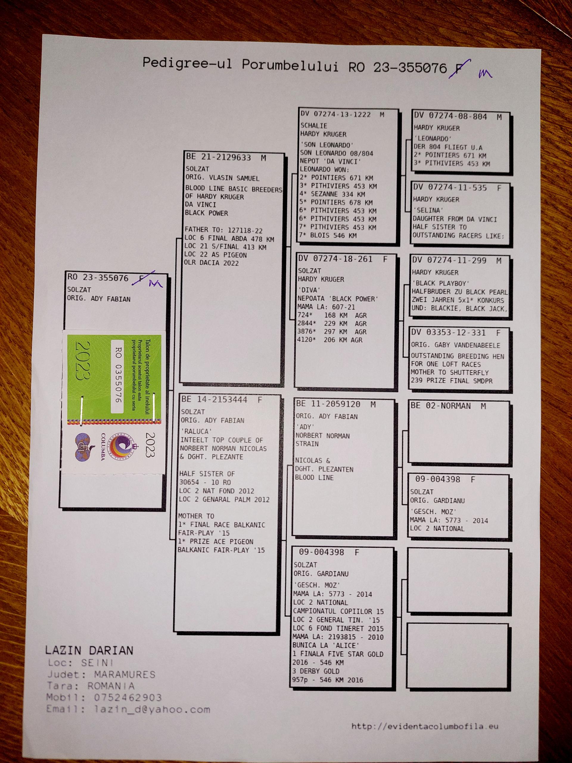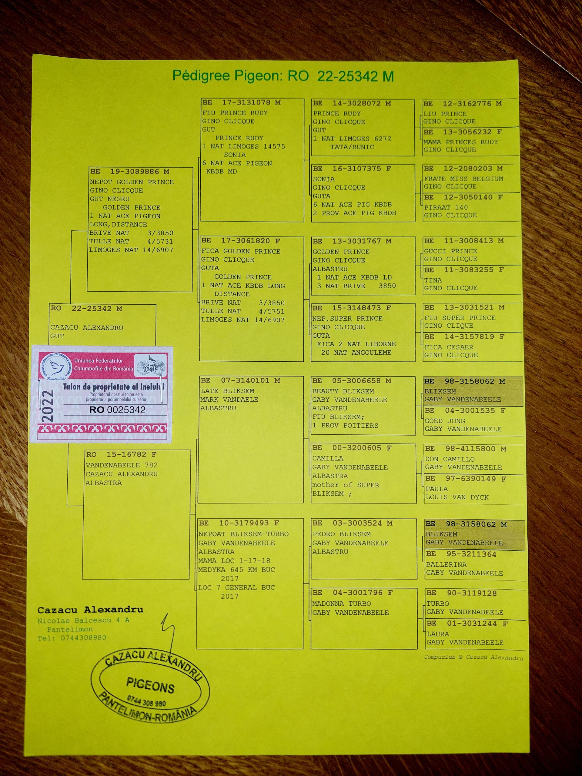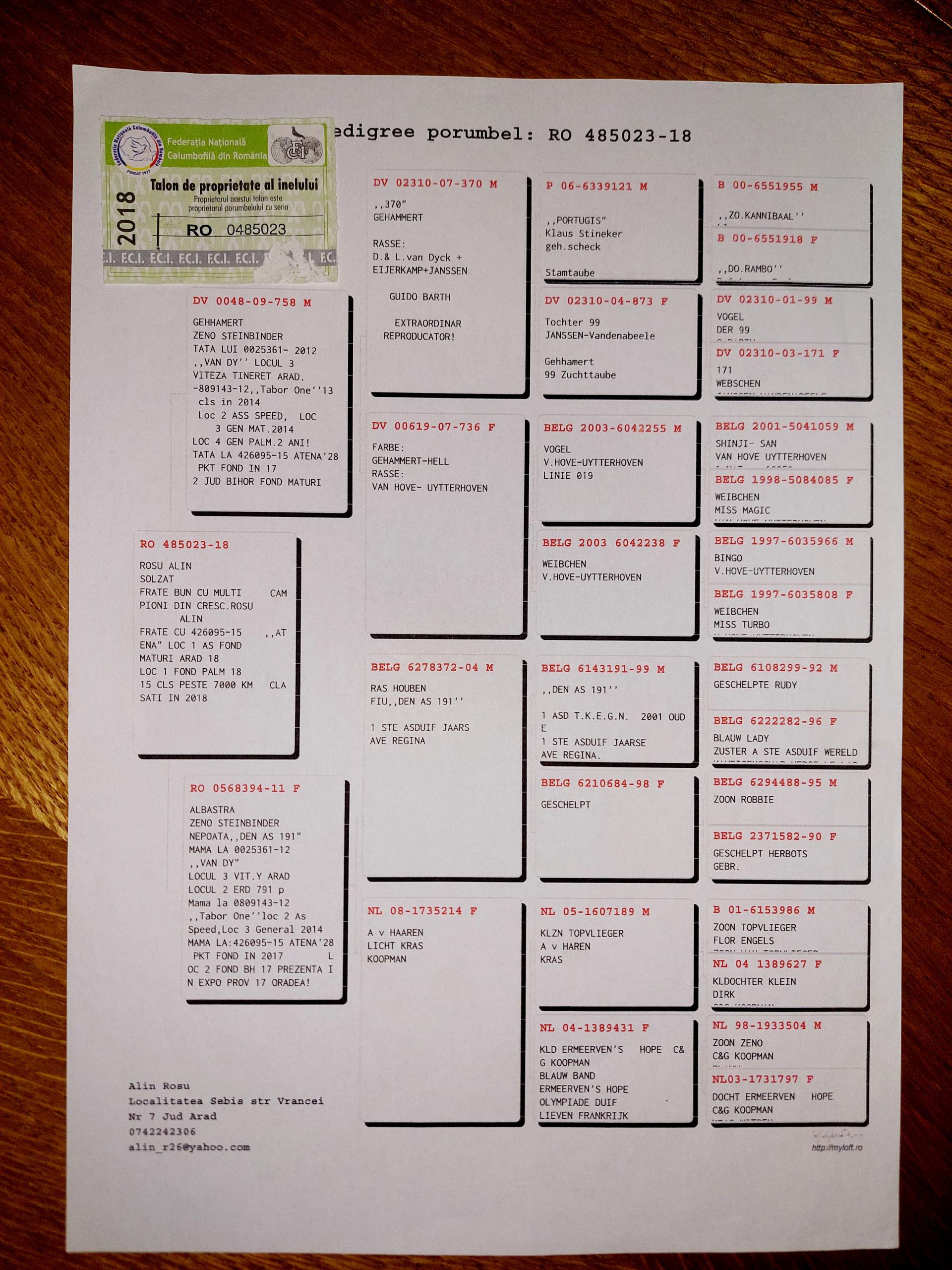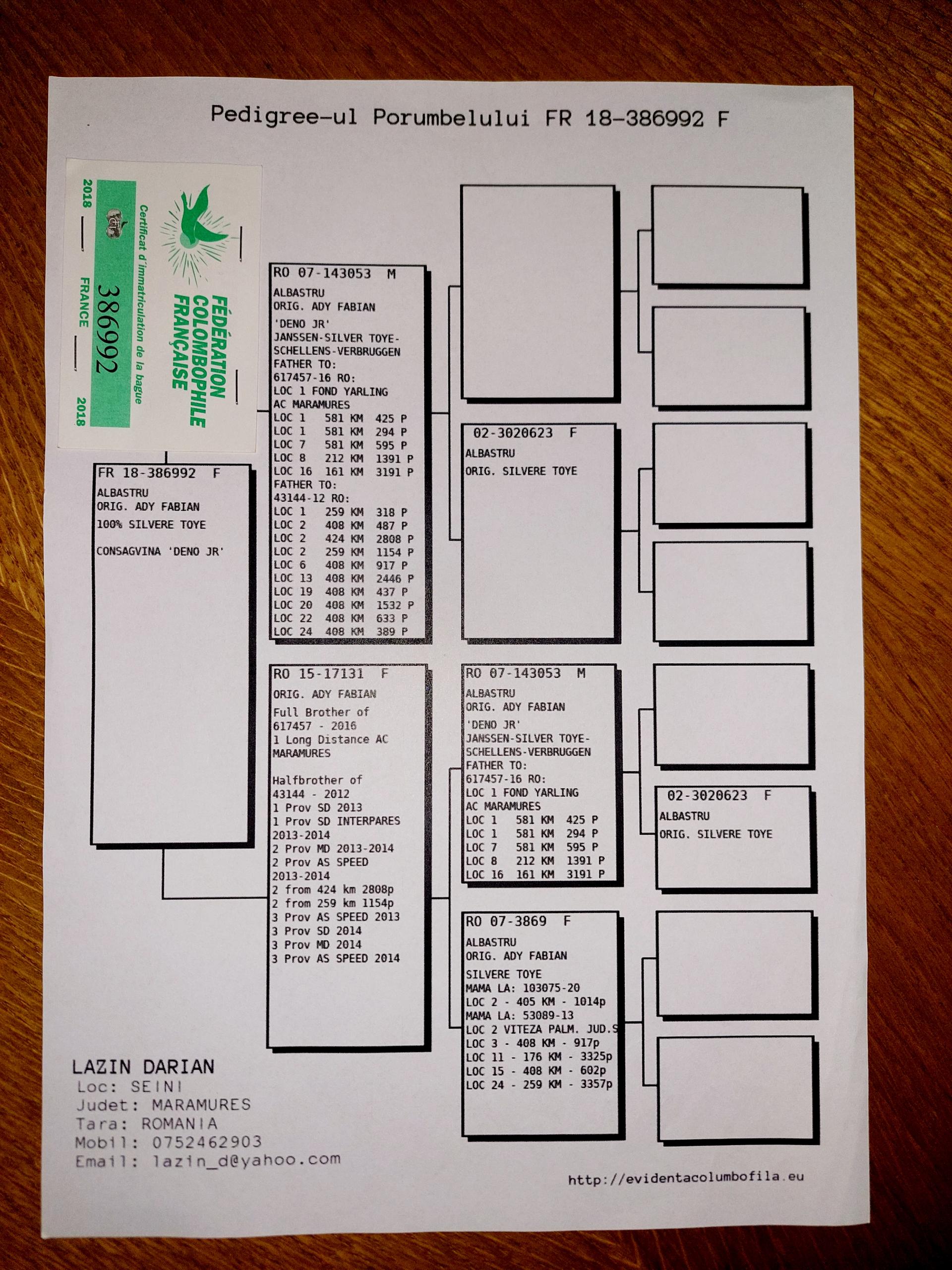 Bunica la loc 13 finala si 8 as porumbei de top 2022 Bunica la loc 8 finala si 1 as porumbei de top 2022 Plus multi altii porumbei de top pe campionat Semifrate cu loc 1 nat. Viteza maturi 2024 Loc 10 nat. as viteza 2024 Loc 20 nat. Viteza maturi 2025 Loc 1 nat. Viteza palm 2 ani 24-25