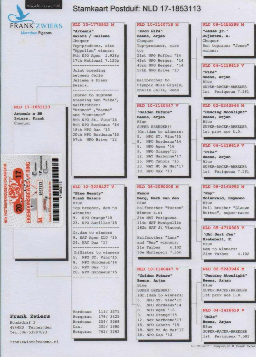 Soră bună a celebrului Blauwe Ster - super zburător & reproducător !