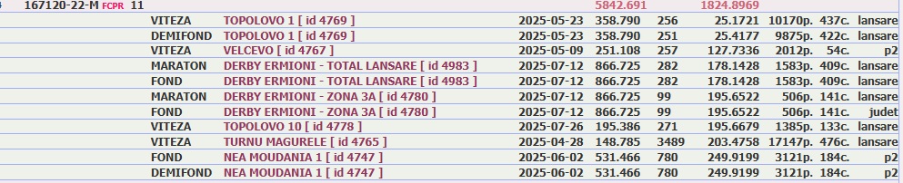Loc 11 Expo Nat. UCP Cat. AS Viteză Palmares 2 ani 2025