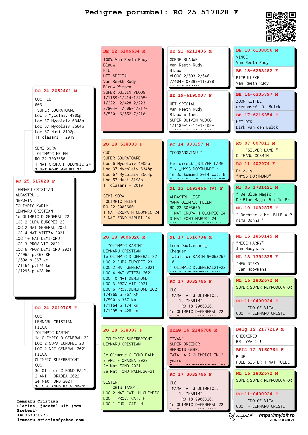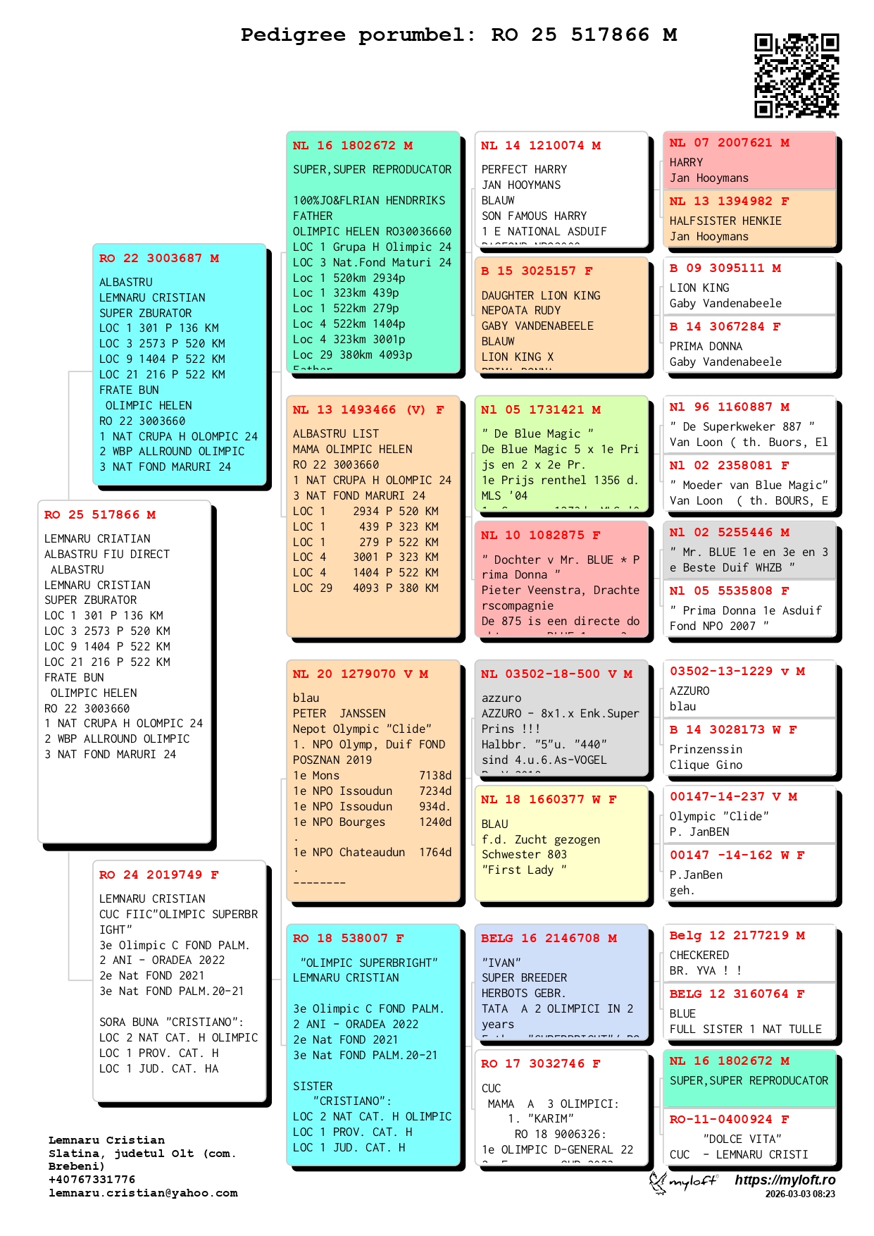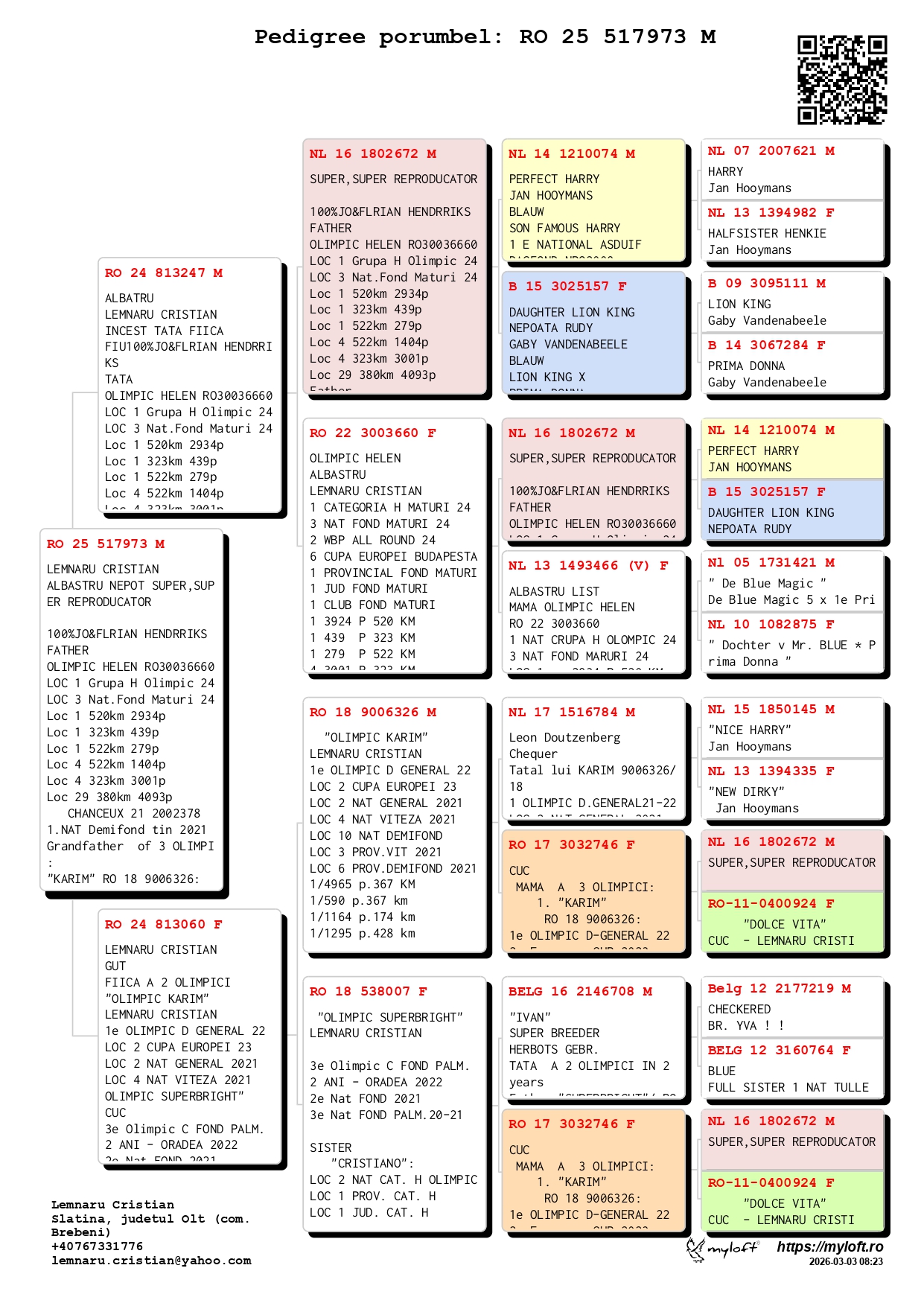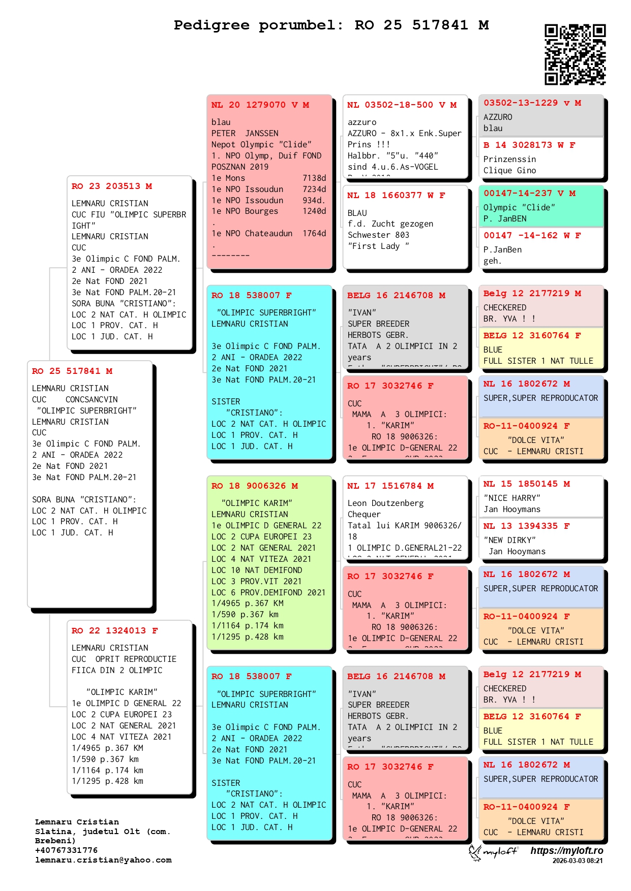 Foarte bun reproducător ! Tată pentru Olimpic Helen